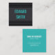 Modern square business card in charcoal, turquoise, white and black with thin lines and bold font.