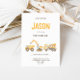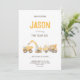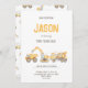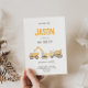 Plongez dans le plaisir avec notre jolie invitation sur le thème de la construction! Doté de camions jaune vif — dont une pelle, un camion à benne et un mélangeur de ciment — jumelés à un texte joyeux et audacieux, cette invitation modifiable est parfaite pour les anniversaires ou toute célébration. Customisez ce design pour n'importe quel âge et préparez-vous à une charge de camion d'excitation à votre soirée sur le thème de la construction. Personnalisez-le pour rendre votre événement spécial et mémorable !