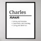 Embrace the legacy of Charles with this custom poster that transcends ordinary décor—it tells a story. Perfect for parents, friends, or anyone who cherishes the name Charles, it adds a personalized touch to any space. Elevate your interior with the "Charles, Boy Personalized Name Definition Poster" and honour the timeless qualities it represents.