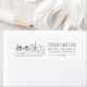 This label features a stylized illustration of the city's unique skyline with its name underneath.