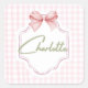 Charlotte Personalized Pink Bow & Gingham Print Square Sticker
