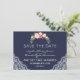 Charm Blush Pink Flowers Lace Navy Wedding Save The Date