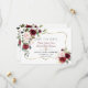 Elegant card design featuring watercolour burgundy blush flowers and green leaves, a faux gold frame, floral divider, on a white background. On the back the same flowers bouquets. Use Personalise tool to add your info, change fonts, font's colours. For matching items, please, visit my Burgundy Blush Flowers Collection.