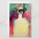 Elegant ,whimsical lady with a sophisticated Venetian feather mask in vibrant pink,green,fuchsia,black,white colours, inspired from Comedy of Art (Commedia dell' Arte ) and Carnival of Venice ,watercolor painting with gold and silver foil .Easy to customize with your own text as a wedding favour ,save-the-date, thank you, bridal showers, birthday parties: sweet 16,quinceanera ,engagement showers, New Year's Day masquerade party, graduations ,anniversaries,or just about any event you wish!