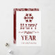 Elegant, ornamental red and white Happy New Year typography, snowflake, pine and cones! Use Customise tool to add your text, celebration year, family name.