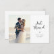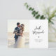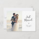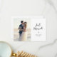 Design faire-part mariage avec de belles lettres noires. L'image de la mariée et du marié, la couleur du dos et le texte peuvent être personnalisés.