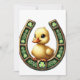 Donnez le ton d'une fête irlandaise magique avec cette invitation charmante avec un mignon canard assis sur un fer à cheval orné de motifs celtes. Idéal pour les événements de la Saint Patrick ou les réunions sur le thème irlandais.
