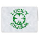 Le trèfle patiné de feuille du jour quatre de St Patrick de style grunge vintage avec le charme chanceux de mots dans de rétros années '70 dénomment le type. L'emblème chanceux circulaire de charme de forme ronde est grand pour le jour du petit pâté de saint ou juste quand vous avez besoin de la chance de l'Irlandais. Le regard grunge vert tout conçoit le © de Copyright www.CuteComfy.com 2013