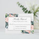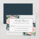 A beautiful wedding RSVP card in a popular colour scheme of pink and midnight blue sets the tone for a charming celebration. Lovely bouquets of watercolor roses and mixed blooms in pink and midnight blue with trailing greenery and sketched elements fill the opposite corners of this design. A thin double lined frame surrounds your text to add elegance to the response card. Personalize the text with your required RSVP date.
