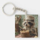 Charming and Cute Raccoon Chef Stirring a Bowl Keychain