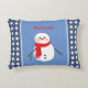 Charming Blue Plaid Snowman with Name Accent Pillow