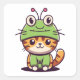 Charming Cat in Frog Hat - Adorable Baby Kitten Square Sticker