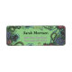 This customizable return address label is a delightful fusion of elegance and whimsy. The background is a refreshing mint green, providing a soothing canvas for the vibrant and intricate floral design that borders the text. The floral illustrations are detailed and rich, featuring hues of purple, blue, and pink that pop against the mint backdrop. The design is further accentuated with artistic swirls and curls that weave through the flowers and vines, adding a touch of whimsy to the overall elegance. This botanical theme gives the label an artistic flair, making it more than just a functional item, but a piece of art. The fully customizable text stands out against the colourful backdrop, ensuring clarity and legibility.