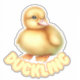 This large nursery sticker features an irresistibly cute, cartoon-style duckling. The duckling is depicted sitting with a gentle and content expression. It has fluffy, soft yellow feathers, a small pink beak, and tiny webbed feet. Its large, bright eyes and slight blush on its cheeks add to its endearing appearance. Below the duckling, the word "DUCKLING" is written in bold, playful yellow letters, enhancing the overall cheerful and child-friendly design.