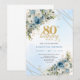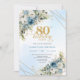 Charming Dusty Blue Floral Gold 80th Birthday Card