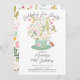 Introducing our exquisite floral tea party invitation, adorned with a charming teapot and delicate flowers. This enchanting design captures the essence of a whimsical tea gathering, perfect for a birthday celebration. The vibrant colours and intricate details of the teapot and flowers create a captivating visual that will surely impress your guests. This invitation sets the tone for an elegant and memorable event.
