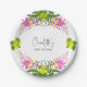 Charming Floral Yellow Pink Wildflower Script Paper Plate
