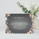 Lovely flowers in soft pink, apricot and blush with berries and blooms in ivory set against a trendy black chalkboard background frames your wedding information card in charming style. Use to include directions, local hotel accommodation information or other wedding details. Perfect for a spring or summer wedding or when a garden or outdoor theme is part of your special day. Whimsical mix of typography adds fun and flair. Coordinating products in this suite include invitation, rsvp card, postage, place cards, table number cards, address labels and favour stickers - everything you need for a charming and complete wedding ensemble.