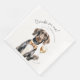 Introducing our delightful Charming German Shorthaired Pointer Waiter Watercolor Customizable Napkin - a perfect statement piece for your unforgettable events! This enchanting napkin features a whimsical hand-painted watercolor artwork of a happy German Shorthaired Pointer dressed up as a waiter, exclaiming 'Drinks on me!'. With its imaginative and heartwarming design, this napkin is a conversation starter that adds a touch of playfulness to your wedding, anniversary, or any other special occasion.