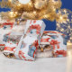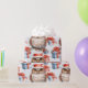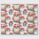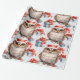 Delightful wrapping paper features whimsical owls in Santa hats, surrounded by colourful gifts and festive decorations, perfect for adding a cheerful touch to holiday packages.