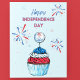 Celebrate the 4th of July with this delightful holiday postcard, featuring a charming hand-drawn cupcake adorned with red, white, and blue frosting. Fireworks and stars surround the festive treat, capturing the joy and spirit of Independence Day. This postcard is perfect for sending warm wishes to friends and family, with the added touch of personalizable text on the back to make your message even more special.