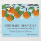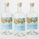 Arancello label for wedding favours and other gifts with a hand-drawn branch full of oranges, orange flowers, and green leaves against a light blue background. Add your names in a charming rustic script. Arancello bottle label for your homemade arancello drink with a charming rustic orange branch full of ripe fruits and pretty blossom and green leaves.