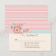 Pretty ivory wedding response card, with a colourful mix of flowers on a pink banner, at the top. A coral pink and white striped pattern and a tiny brown on robin's egg blue polka dot stripe, runs across the top of the card. Personalize the brown text to suit your needs. Lovely mix and match wedding products are available.