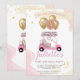 Charming Pink Golf Cart First Birthday Girl Invitation