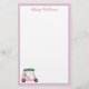 A charming unique golf cart -- pink and green -- tastefully done -- ready to run the course -- stationery. This is a great gift for all golf lovers -- fun / attractive / unique. Personalize it with your/her name. If you have any design questions or a special request, please send a chat or an email to: charmdesignstudio@rcn.com and we'll be delighted to assist.