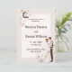 Romantic wedding invitation featuring a charming illustration of the bride and groom.The background is soft beige with delicate leaves.The design is beautiful and elegant, perfect for a romantic wedding.