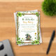 A rustic, nature‑themed invitation layout with bright green clovers and playful illustrated details. All text and elements are customizable, and the matching clover pattern appears on the reverse side.