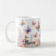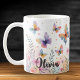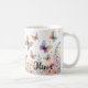 This personalized mug features a dreamy watercolor butterfly garden where colourful-winged butterflies dance among soft wildflowers. With a soothing background of pink, blue, and peach hues, this charming illustration creates a magical and serene atmosphere.