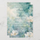 Celebrate the beginning of your forever with a wedding invitation that feels as unique and meaningful as your love story. This stunning design captures the essence of romance with an enchanting watercolor background, awash in soothing shades of soft blue and green. Delicate white floral accents frame your words, creating an artistic balance that exudes timeless elegance and charm.
