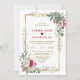 Charming White Red Floral Gold Christmas Wedding Invitation