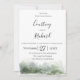 Watercolor forest meadow scenery, wedding invitation. Customize text, font style, colour and size. Backing colour shown in Rain Forest Green can be customized as well.