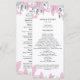 © Socialite Designs & LICENSORS. Beautiful pink and green wisteria flower watercolor wedding program ready to be personalized for your special event. The details of your wedding are surrounded by elegant hanging wisteria flowers. The front of the program has your names display, the venue name and location, the ceremony proceedings, and a thank-you message. The back lists the names of the wedding party. Font style can be changed. Need HELP with customizing or additional products with this design? Please do not hesitate to contact Socialite Designs.