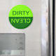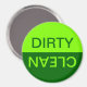 Un simple demi-vert foncé et demi-chartreuse sale par rapport au design d'aimant lave-vaisselle propre.