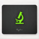 Cool, sleek, Chartreuse, Neon Green microscope, microscopy clip art on black and dark grey textured background. Great gift for research scientists or anyone that loves science! Add your name or text to personalize it! Images used on this item are licensed and © Graphics Factory.com