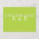 Chartreuse Simplicity Monogram Save the Date Postcard