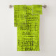 Un design abstrait en noir et gris fusain orne un arrière - plan chartreuse sur ce set de serviettes de bain tendance.
