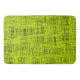 An abstract design in black and charcoal grey adorns a chartreuse background on this trendy bath mat.