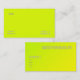 Business card template with bright Chartreuse yellow solid color background and hand lettering style gray fonts .Simple and trendy design by Alma Wad .Personalize both sides now .It comes 50 in a pack .