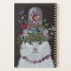 Chat, Blanc avec cloche papillon, sur noir par FabFunky. Un fabuleux chat blanc avec des oiseaux, de la verdure et des papillons au sommet de la tête. | 191532D