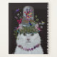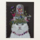 Chat, Blanc avec cloche papillon, sur noir par FabFunky. Un fabuleux chat blanc avec des oiseaux, de la verdure et des papillons au sommet de la tête. | 191532D