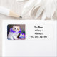 Retourner les étiquettes d'adresse avec un chaton blanc magnifique! Un chaton moelleux porte un collier de fleurs violettes. Un bol bleu de fleurs blanches et violettes se trouve à droite. Un cadeau merveilleux pour les amoureux de les chats et les amateurs d'art victorien !