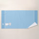 Chat blanc et monogramme sur l'ensemble de serviettes de bain bleu clair. Image de chat seulement sur un coin. Elégant design simple pour les célibataires et les couples !