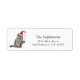 Une étiquette d'adresse de retour de Noël amusante et festive, parfaite pour tous les amoureux de les chats ! Un chat gris portant un chapeau de Père Noël frappant aux lumières est à gauche du étiquette, customisez facilement la typographie noire avec votre nom et adresse.