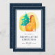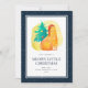 Mignonne carte de Noël meowy avec une aquarelle illustrant un chat gras portant un casquette du Père Noël. Personnalisez facilement cette carte de vacances bleu aquarelle avec votre nom de famille et votre texte.