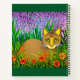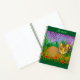 Journal dans une illustration d'un chat gingembre mignon aux yeux verts, allongé dans un jardin d'été de maîtres rouges et de jacinthes violets - avec un nom modifiable