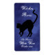 Un chat noir lugubre dans un brouillard violet violet, décore ce étiquette de vin personnalisé pour les bouteilles d'Halloween. Il est facile de se customiser avec des bouteilles de bière ou d'eau.
